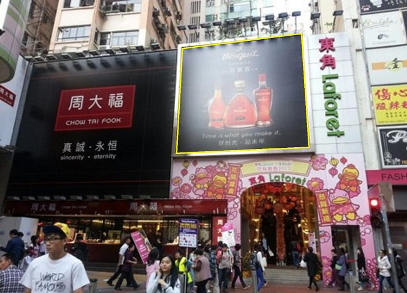 東角LaForet是一個著名的商場,每日人潮流量有超過150,000人次。它立在銅鑼灣中心,被時代廣場,金百利,皇室堡及世貿中心等購物中心包圍。在這條窄窄的通道提供了兩座大型建築的通道,讓你向走過的行人宣傳。