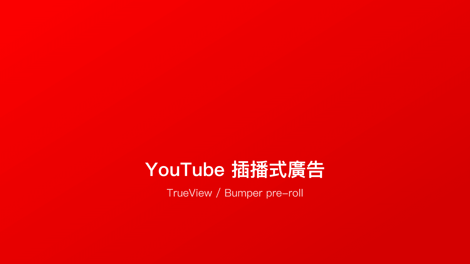 1. Skippable In-stream Video Ads (可略過的插播廣告) 用戶需要至少看完 5 秒廣告後,才可以選擇略過或繼續收看廣告。因此品牌適宜把最重要的資訊放在最前,讓用戶在短時間裡能獲得廣告的信息,從而對品牌產生興趣。觀眾可以跳過影片,如影片不合他們的口味,這樣有助保障用戶體驗。特點是用戶觀看廣告超過 30 秒或與廣告產生互動時才需要收費 - 每次觀看收費 (CPV)