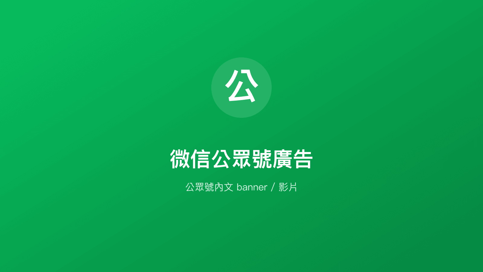 公眾號廣告插入於垂直類公眾號文章中間或底部,形式包括圖文 banner 同短影片。